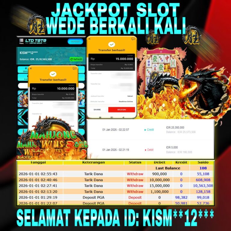 LTDTOTO JACKPOT MAHJONG WINS 3-BLACK SCATTER RP 25.000.000 KAMIS 01 JANUARI 2025 Selamat kepada User id : CIMP*O*** Telah berhasil mendapatkan kemenangan besar pada permainan SLOT MAHJONG WINS 3-BLACK SCATTER, kemenangan Sebesar Rp.25.000.000 , Setelah mengisi formulir withdraw dengan kurang waktu hanya 5 – 10 menit pihak LTDTOTO sudah melakukan transfer kepada pemilik User id dan dana sudah dapat di cairkan…