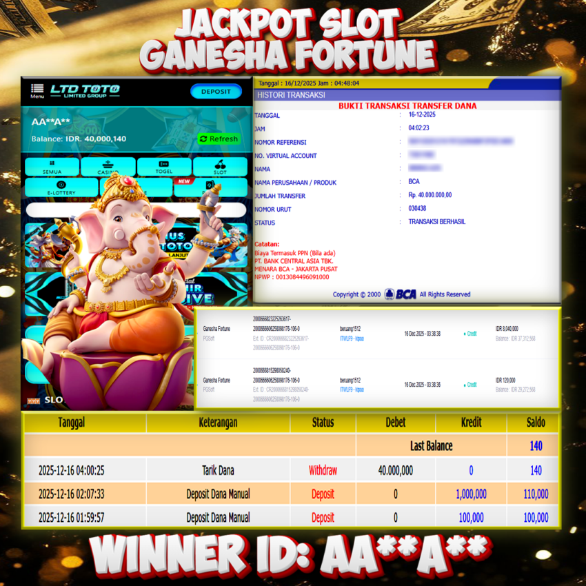 LTDTOTO JACKPOT GANESHA FORTUNE RP 40.000.000 DI BAYAR LUNAS!