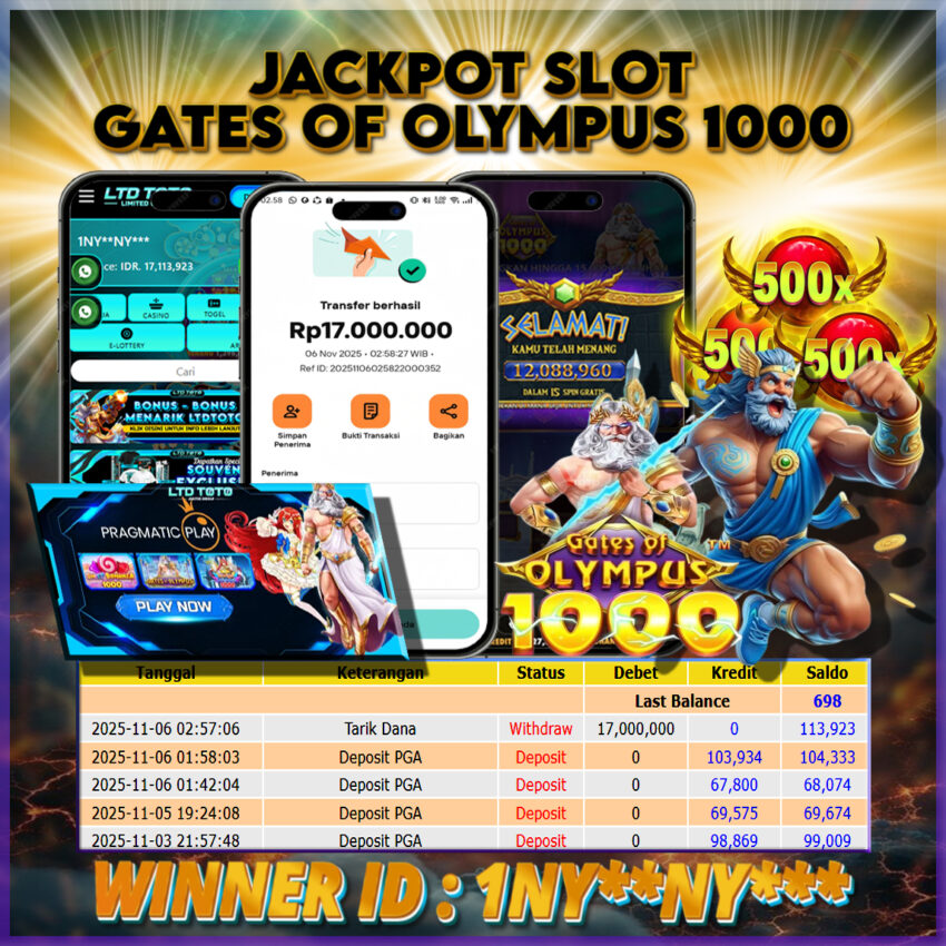 LTDTOTO JACKPOT GATES OF OLYMPUS 1000 RP 17.000.000 KAMIS 06 NOVEMBER 2025
