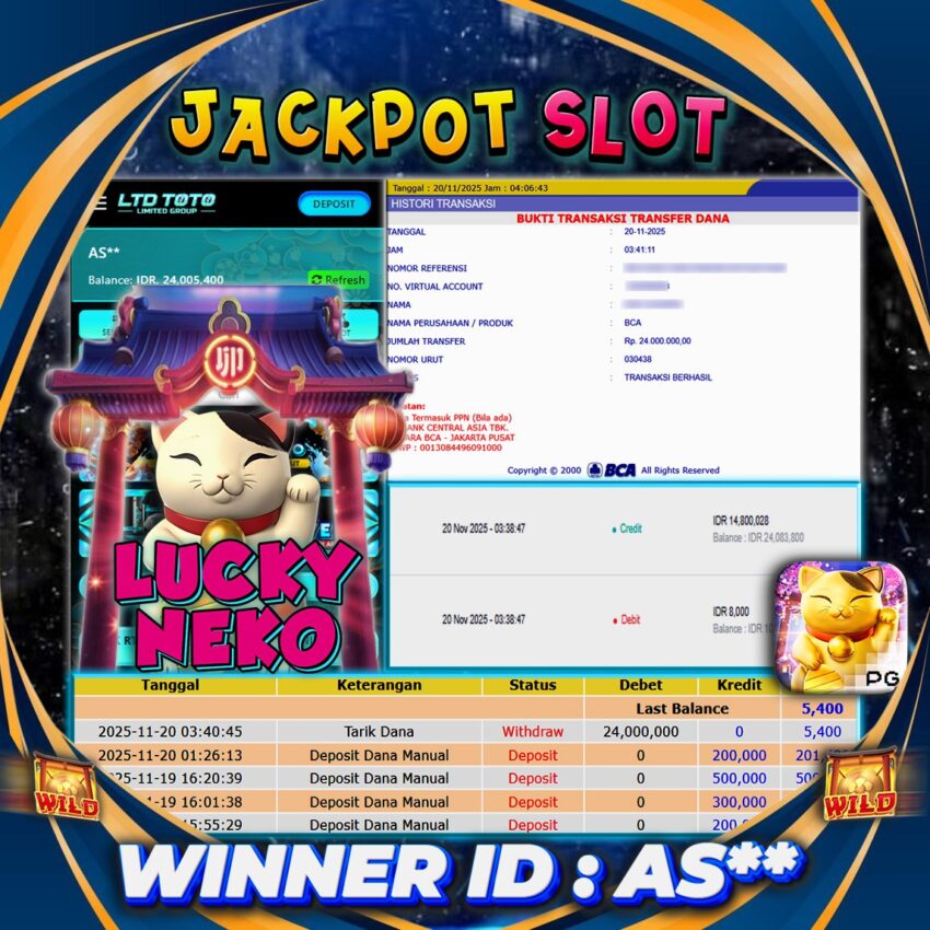 LTDTOTO JACKPOT LUCKY NEKO RP 24.000.000 KAMIS 20 NOVEMBER 2025